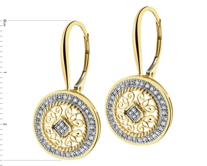 Kolczyki z żółtego złota z diamentami – rozety – 0,20 ct – próba 585