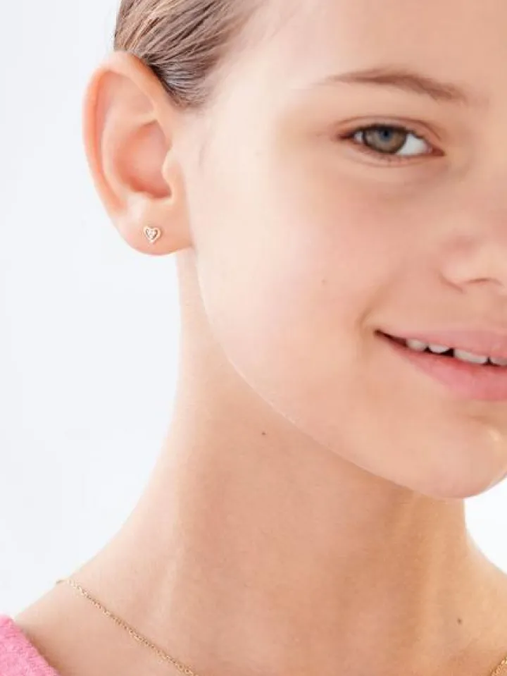 Kolczyki z żółtego złota z diamentami – serca – 0,03 ct – próba 585