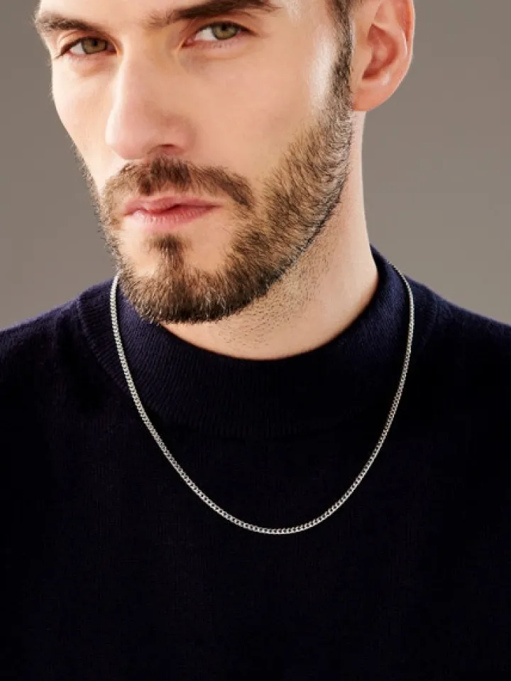 Srebrny łańcuszek rodowany o splocie typu pancerka.