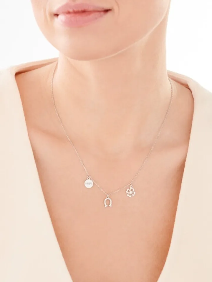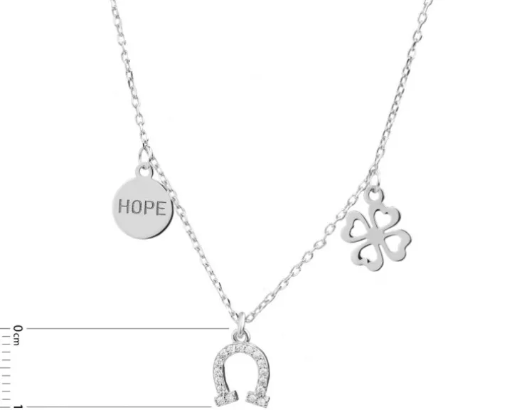 Naszyjnik srebrny z cyrkoniami – podkowa, koniczyna