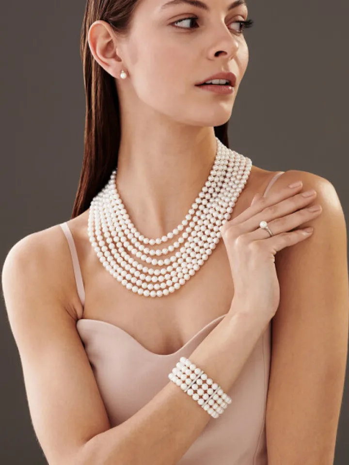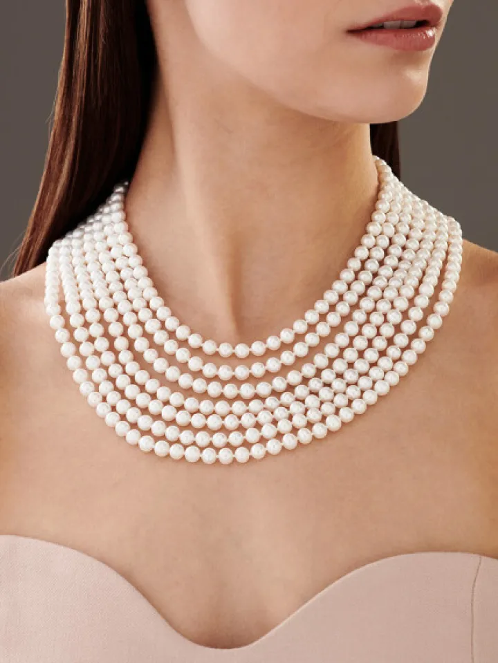 Naszyjnik z pereł z elementami z białego złota z brylantami – próba 585