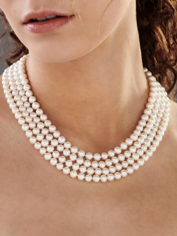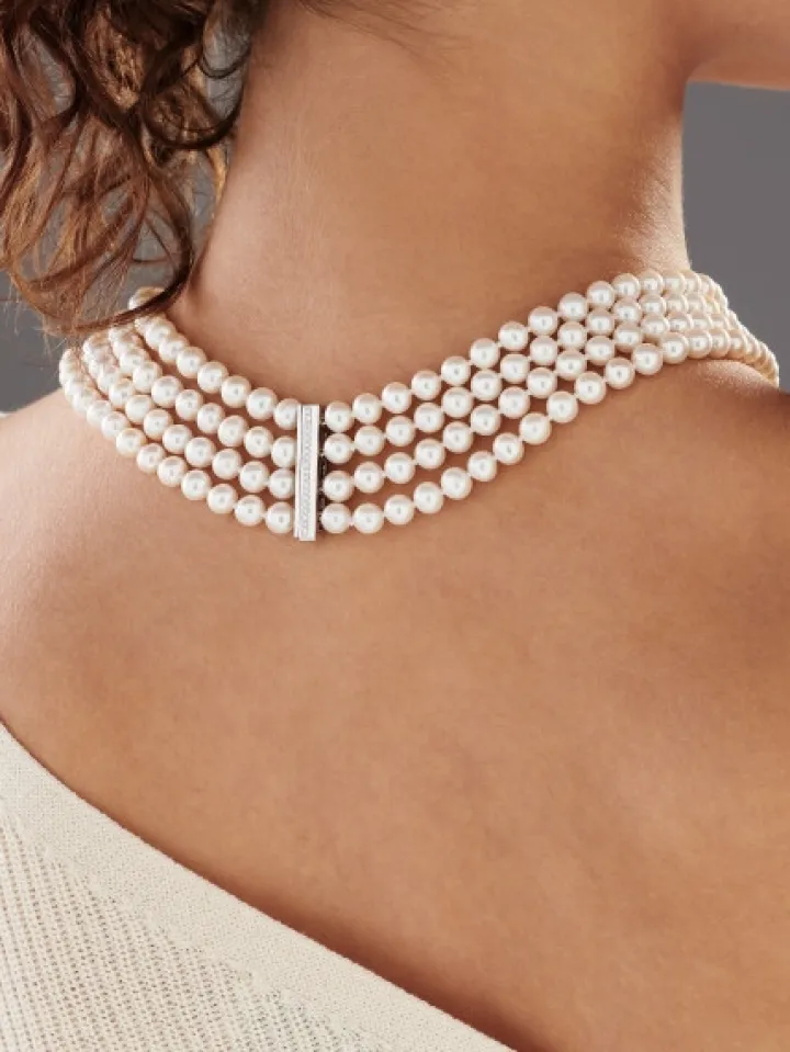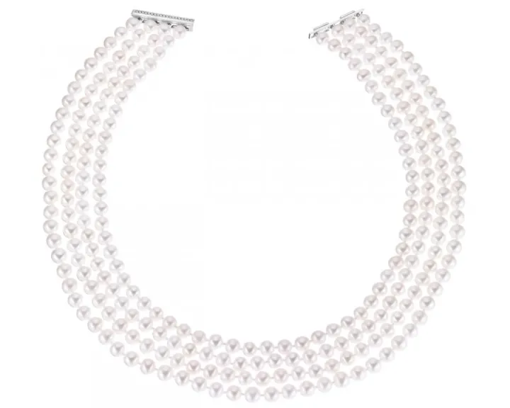 Naszyjnik z perłami, brylantami i elementami białego złota – próba 585