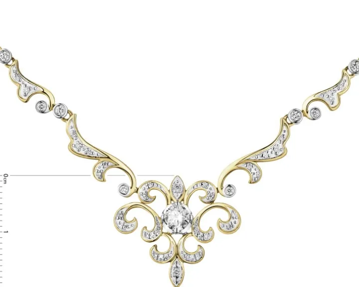 Ekskluzywnynaszyjnik z żółtego złota próby 585 i brylantów to spełnienie marzeń oponadczasowej, wykonanej z największym kunsztem biżuterii. Brylantowy naszyjnikzachwyca misternym elementem dekoracyjnym o pięknej i wyjątkowo wysmakowanejformie, którą podbija blask najszlachetniejszych kamieni. Złoty naszyjnik zbrylantami o łącznej masie 0,45 ct to kwintesencja elegancji i klasycznego szyku,a na kobiecym dekolcie prezentuje się zjawiskowo. Zapakowany w gustowne, firmowepudełko z logo Apart naszyjnik to gotowy prezent na takie okazje, jak rocznicaślubu, urodziny czy inne ważne jubileusze. Wysoka jakość, stylowy design orazpołączenie złota z brylantami tworzą niepowtarzalną kompozycję. To biżuteria,która może być symbolem rodzinnych więzi, przekazywanych z pokolenia napokolenie.