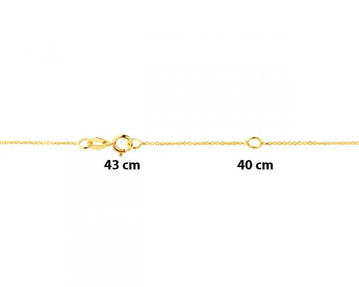 Złoty naszyjnik z rozświetloną diamentami zawieszką w formie dwóch przenikających się kółeczek z żółtego złota. Naszyjnik wyróżnia się bezpretensjonalnym stylem i uniwersalnym designem, który świetnie sprawdzi się zarówno do codziennych, jak i bardziej eleganckich stylizacji.
