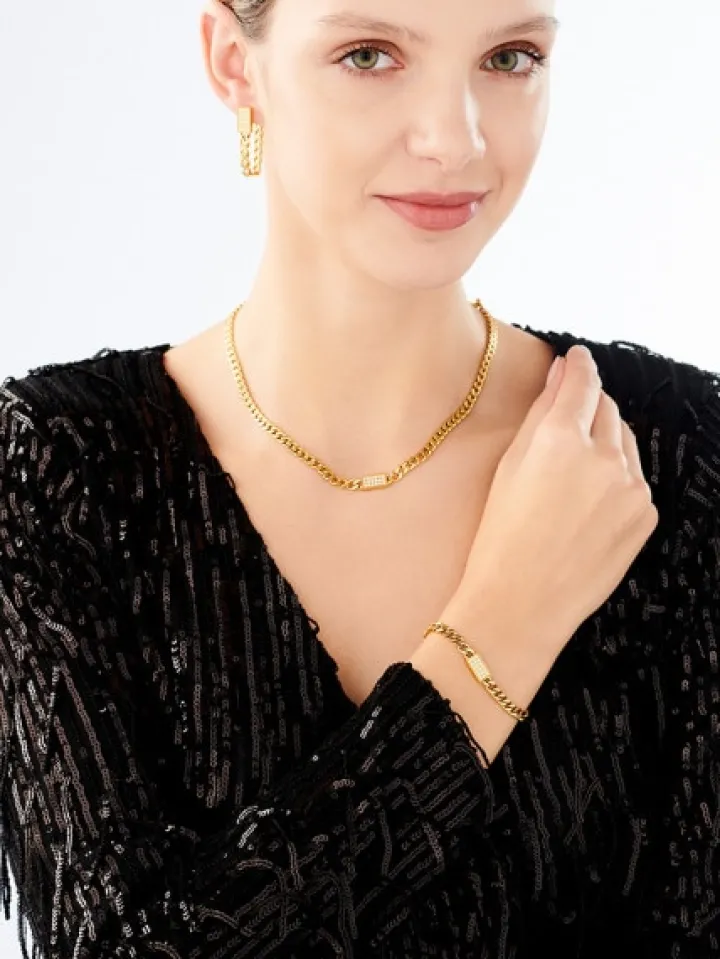 Naszyjnik ze stali szlachetnej z cyrkoniami