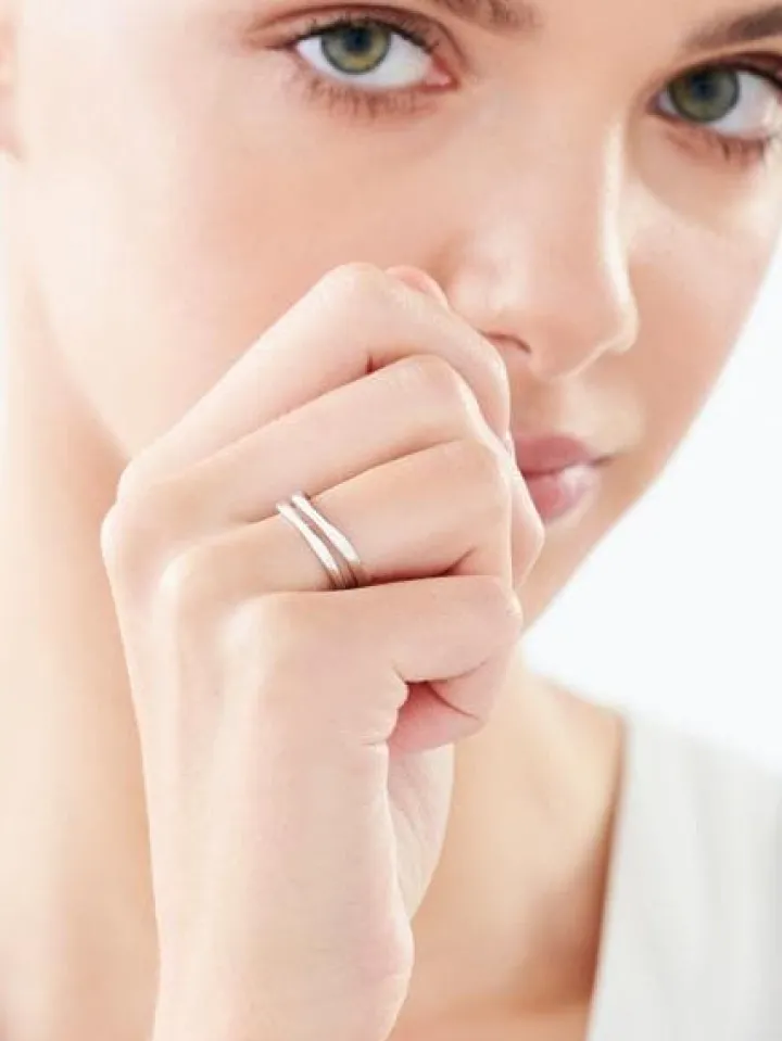 Oryginalny srebrny pierścionek dla kobiet, które poszukują w biżuterii nowoczesnych form. Nietuzinkowy design wzoru i minimalizm stylu sprawiają, że doskonale łączy się w modowe kompozycje z innymi pierścionkami, z którymi można go nosić jednocześnie. Pierścionek ze srebra próby 925 można także zestawiać z wieloma wzorami bransoletek czy naszyjników, w zależności od tego, jaki efekt chcemy uzyskać. Do stylizacji zainspirowanych trendami doskonałe będą eklektyczne połączenia biżuterii, a jeśli preferujemy stonowany look, można do pierścionka dobrać wzory zaprojektowane w duchu szlachetnej prostoty.