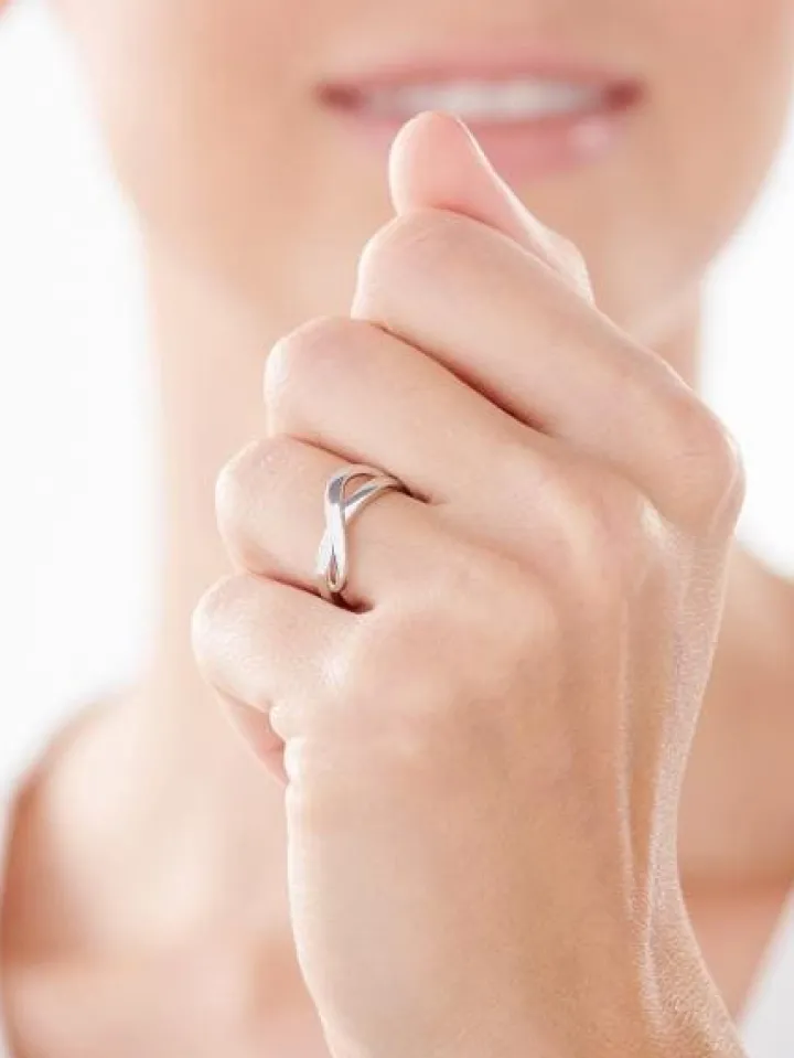 Nowoczesny pierścionek ze srebra próby 925. Zainspirowany modowymi trendami wzór jest jednocześnie minimalistyczny i oryginalny. Na kobiecej dłoni przykuwa wzrok nietuzinkową formą z dekoracyjnym motywem przenikających się elementów o łagodnych liniach. Prostota i intrygujący kształt sprawiają, że wzór spodoba się kobietom, które poszukują biżuterii w mniej klasycznym stylu. Można go nosić w kompozycjach z innymi pierścionkami, z którymi będzie doskonale współgrał. Srebrny pierścionek jest uniwersalny, dlatego koresponduje z dowolnymi naszyjnikami, kolczykami i bransoletkami.