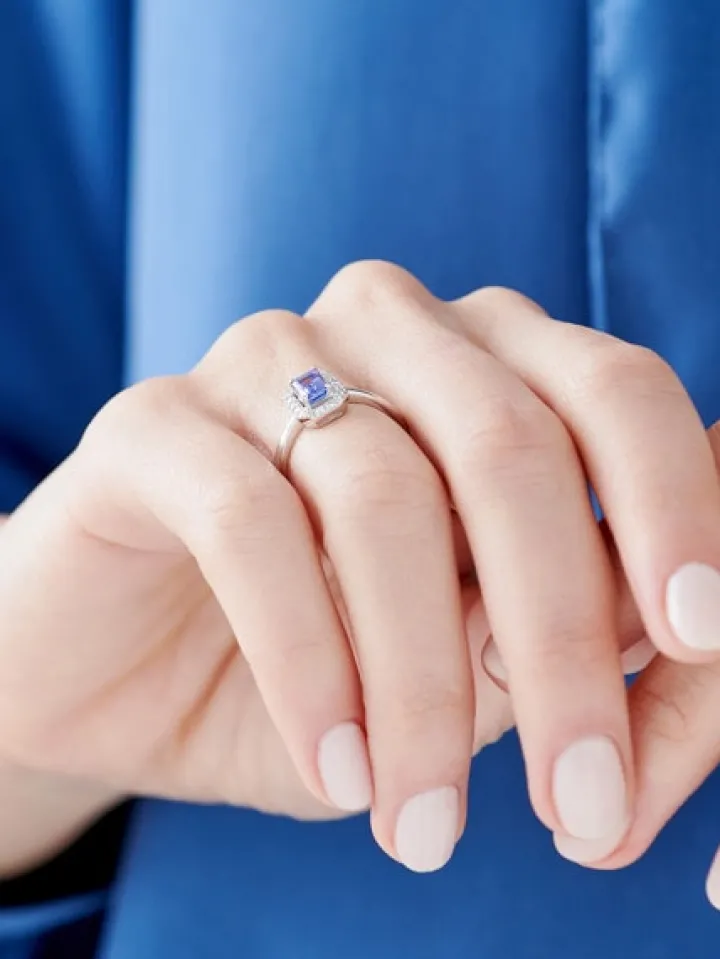 - Tanzanit – Kształt/Szlif: Szmaragdowy, 1 szt. o masie 0,53 ct,