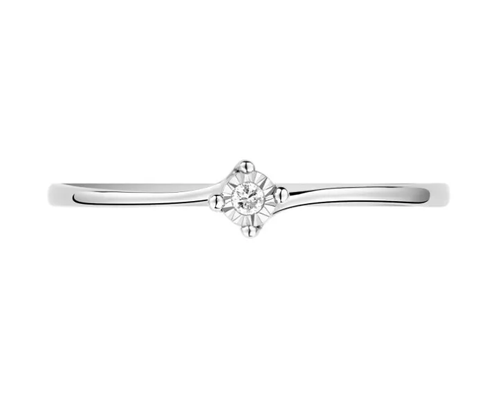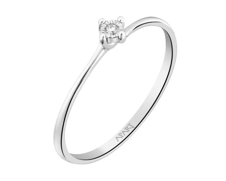 Chwila zaręczyn przypieczętowana diamentowym blaskiem. Filigranowy pierścionek zaręczynowy z białego złota, rozświetlonego brylantem. Cztery krapy oraz fasetowana otoczka sprawiają, że najpiękniejszy kamień zaręczynowy sprawia wrażenie większego i intensywniej lśni.