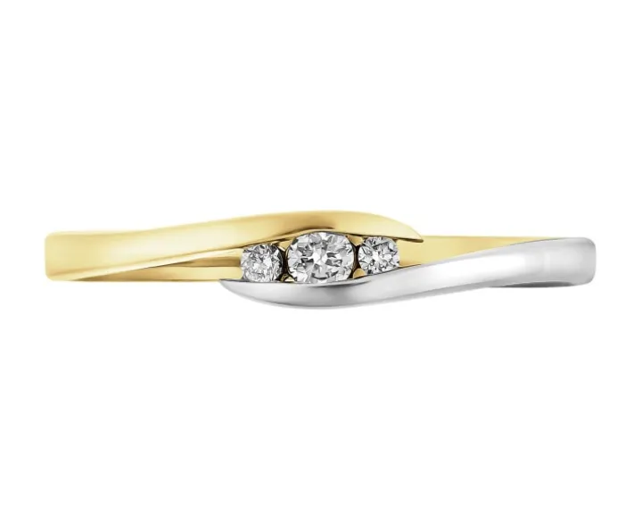 Chwila zaręczyn przypieczętowana diamentowym blaskiem. Wymarzony kamień zaręczynowy, czyli diament ozdobiony brylantowymi szlifami, olśniewa w pierścionku zaręczynowym potrójnym blaskiem. W subtelnych objęciach klasycznego złota, dopełnionego białym kruszcem, zamknięto trzy rozmigotane brylanty.