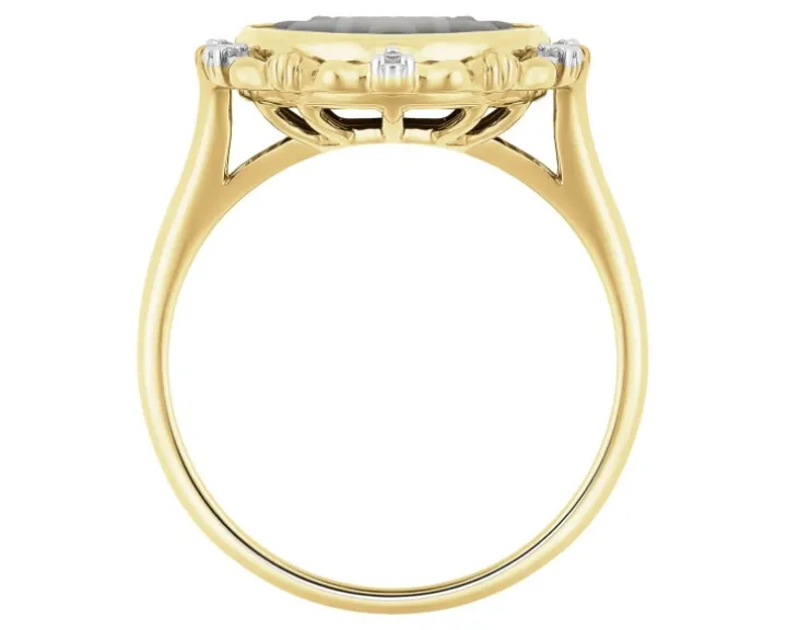 - Diament – Kształt/Szlif: Ośmiokant, 6 szt. o łącznej masie 0,02 ct,