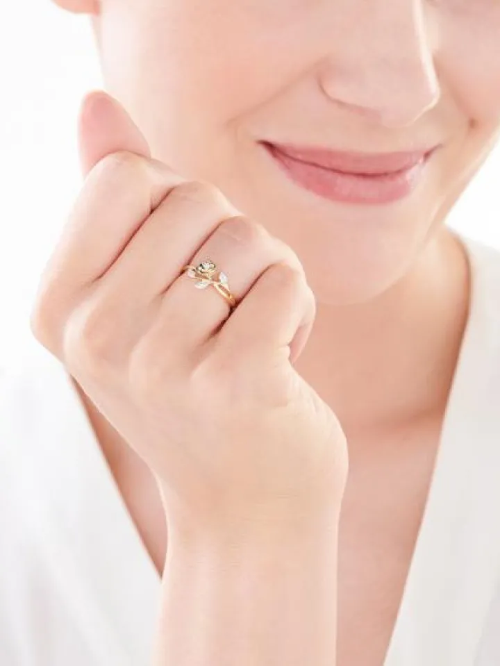Wyrafinowany, złoty pierścionek z różą i diamentami w pełnym delikatności wydaniu. Biżuteria z żółtego złota próby 375 zachwyca lśniącym wykończeniem oraz doskonałą wytrzymałością na zadrapania, idealnie nadając się do codziennego użytkowania. Ponadczasowy motyw róży, która subtelnie wyrasta z szyny pierścionka, symbolizuje nieprzemijające piękno oraz miłość. Szlachetny kwiat ozdabia kompozycja siedmiu starannie oprawionych diamentów o łącznej gramaturze 0,04 ct. Nadają one pierścionkowi wyjątkowego blasku, który przykuwa uwagę swoją intensywnością. Romantyczny projekt pierścionka z różą pokochają miłośniczki skromnych dodatków o cudownej symbolice. Pierścionek łączyć możesz z ulubionymi dodatkami lub uzupełnić bransoletką i naszyjnikiem z kolekcji Secret Garden do kompletu.