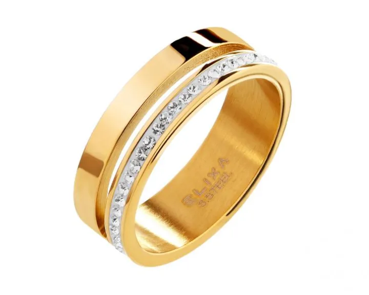 Pierścionek ze stali szlachetnej z kryształami