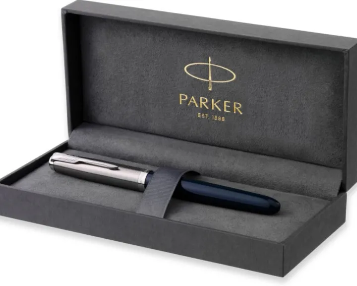 Pióro wieczne PARKER 51, ciemnogranatowa żywica, chromowane wykończenie, cienka końcówka z czarnym atramentem, pudełko upominkowe