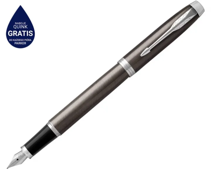Parker IM pióro wieczne Dark Espresso CT, ciemnobrązowy lakier z chromowanymi wykończeniami, stalówka fine, nabój z niebieskim atramentem, opakowanie prezentowe