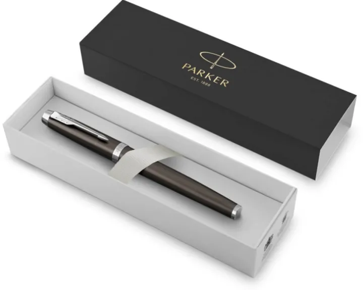 Eleganckie, wyrafinowane i profesjonalne – pióro wieczne PARKER IM to partner doskonały i z nieograniczonym potencjałem. Opływowy kształt łączy się płynnie z innowacyjnym designem w efektownej kompozycji. Lakier w bogatym kolorze ciemnego espresso z akcentem w postaci chromowanych wykończeń sprawi, że będzie to prezent zapadający w pamięć na długo. Stalówka z trwałej stali szlachetnej wyprofilowana została, by zapewnić optymalny kąt pisania. Do korzystania z nabojami QUINK lub z tłoczkiem napełnianym atramentem z butelki. Każdy szczegół został dopracowany, by zapewnić doświadczenie pisania niezawodnego i wiernego ponad 130-letniemu dziedzictwu marki.