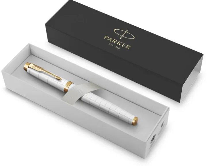 Eleganckie, dopracowane i profesjonalne pióro wieczne PARKER IM Premium to doskonały towarzysz o nieograniczonym potencjale. Smukła, stożkowa forma doskonale współgrająca z kultowym, lecz nowoczesnym wzornictwem robi imponujące wrażenie. Korpus jest pokryty stylowym perłowym lakierem i asymetrycznym grawerowaniem w kwadraty ze złotym wykończeniem — ten model marki PARKER znakomicie sprawdzi się jako prezent, który zapadnie w pamięć. Stalówka wykonana jest z trwałej stali szlachetnej, a jej kształt zapewnia optymalny kąt pisania. Każdy szczegół jest dopracowany tak, aby zapewnić niezawodność użytkowania i wierność ponad 130-letniemu dziedzictwu marki PARKER. Można stosować z nabojami QUINK lub atramentem w butelce.