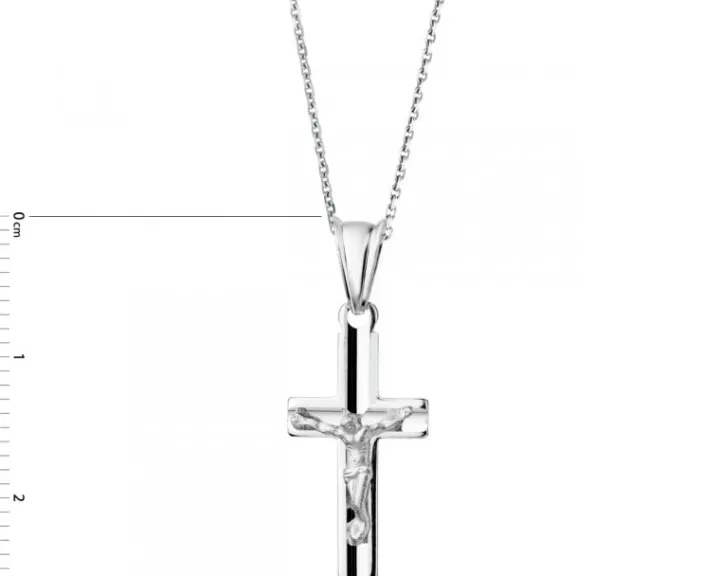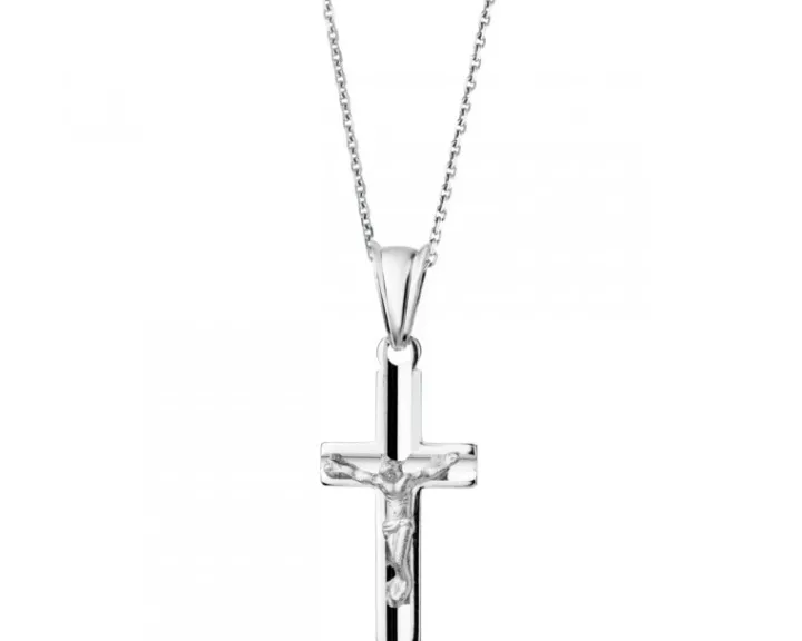 Srebrna zawieszka w kształcie krzyża z postacią Ukrzyżowanego, wzorowana na średniowiecznych krzyżach pasyjnych, nasycona ekspresją i symboliką o dużej sile oddziaływania. Dramatyzm przedstawionej sceny, ukazanej zgodnie ze średniowiecznym kanonem ikonograficznym, skłania do kontemplowania tajemnicy ukrzyżowania.