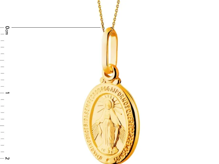 Zawieszkę wykonano z żółtego złota próby 585.