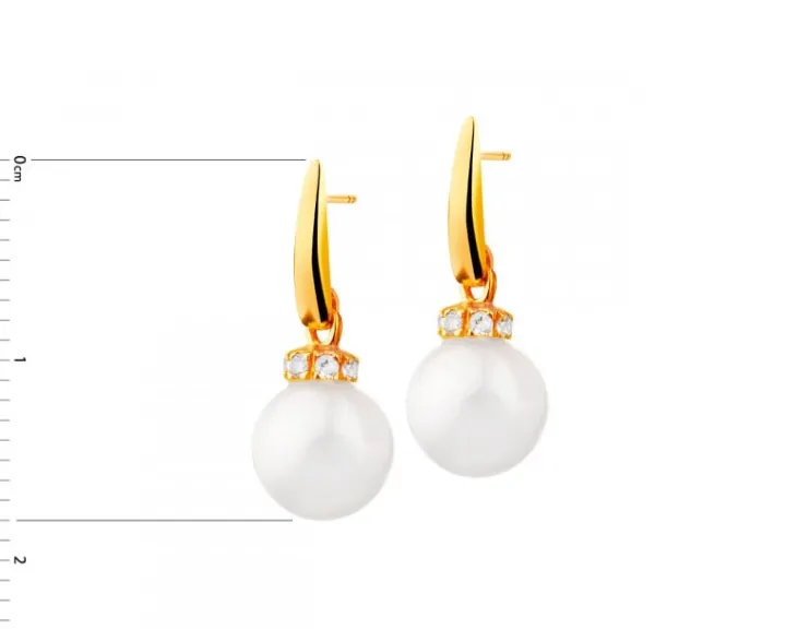 Złote kolczyki z perłami i cyrkoniami