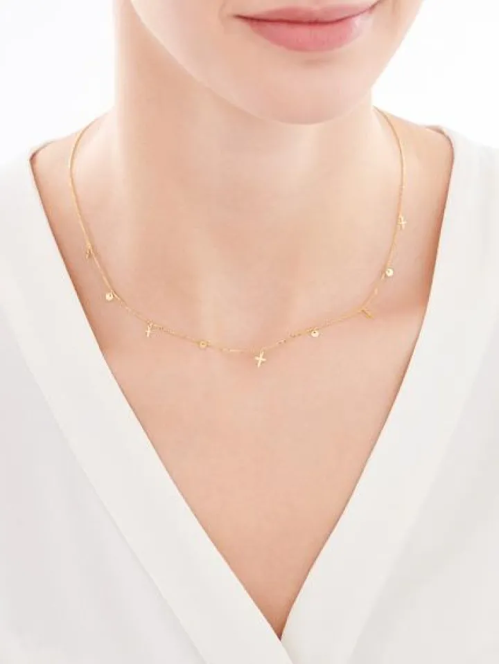 Złoty naszyjnik, ankier – krzyże, koła